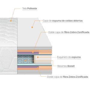 Gracias a su exclusiva fibra Zebra zonificada, se adapta de forma inteligente a la forma de tu cuerpo, aliviando puntos de presión y mejorando notablemente la postura lumbar. Despierta renovado, sin dolores y listo para conquistar el día.