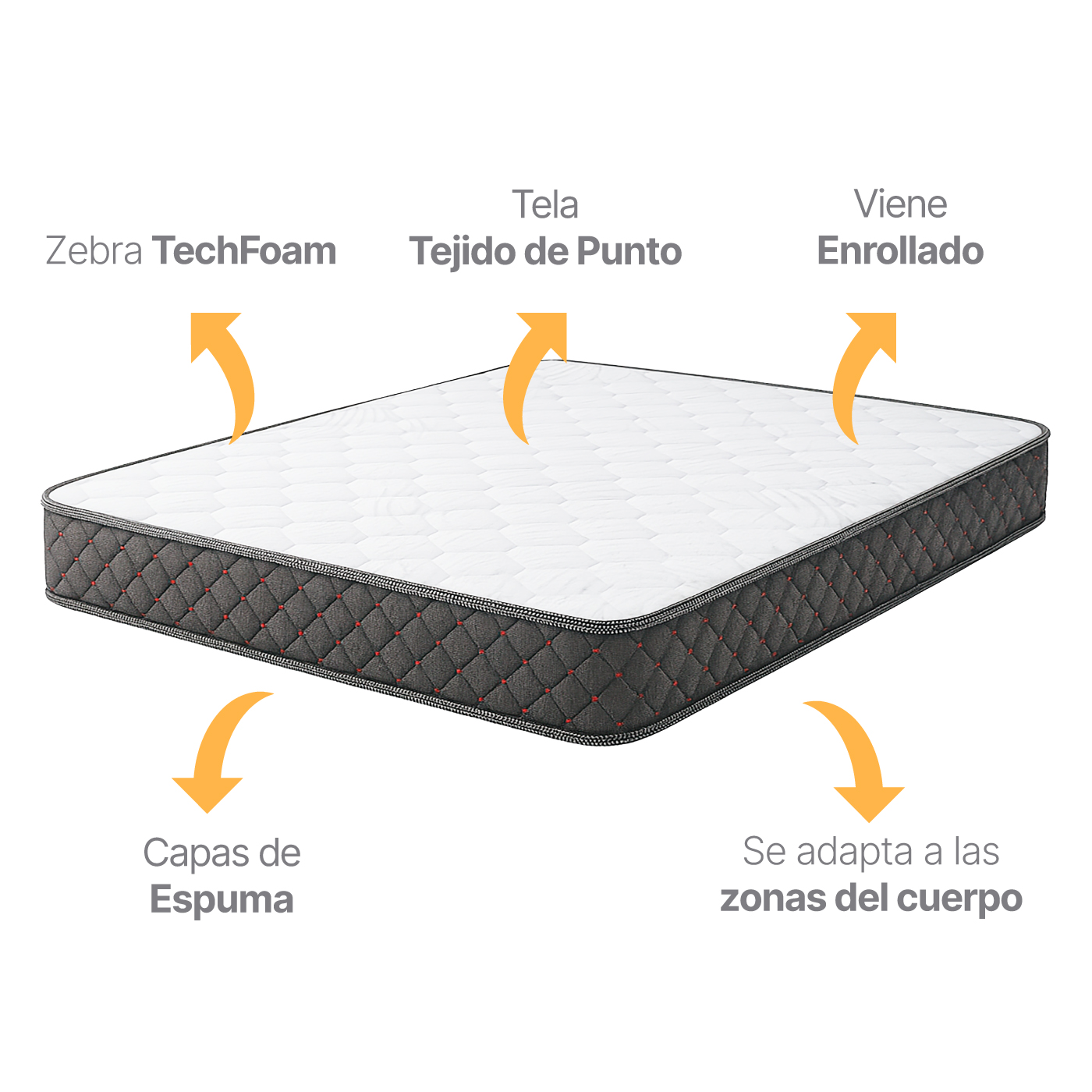 • Soporte ergonómico confiable: Núcleo de espuma Zebra 25 (densidad 25 kg/m³) que mantiene la alineación natural de la columna y evita hundimientos.