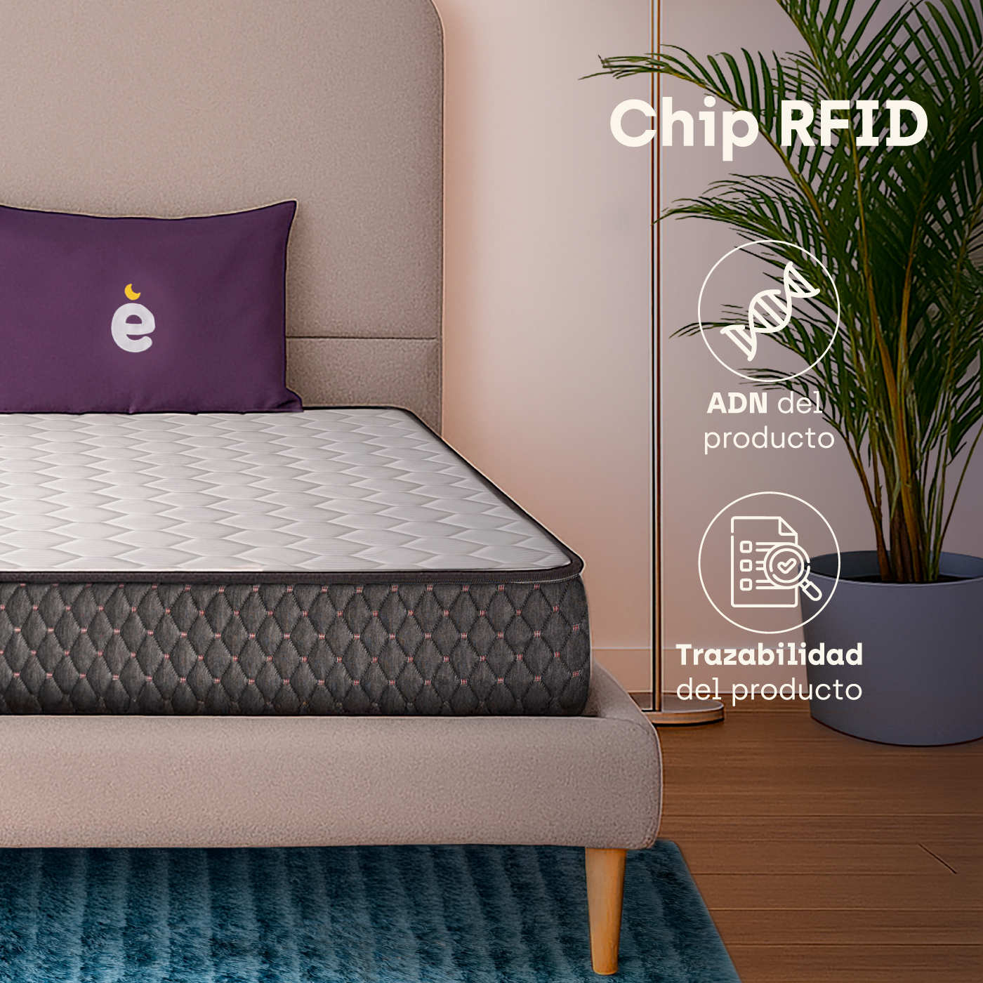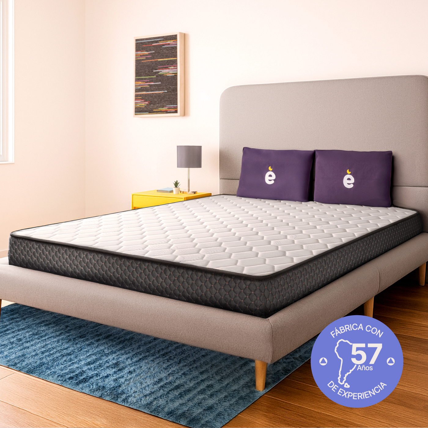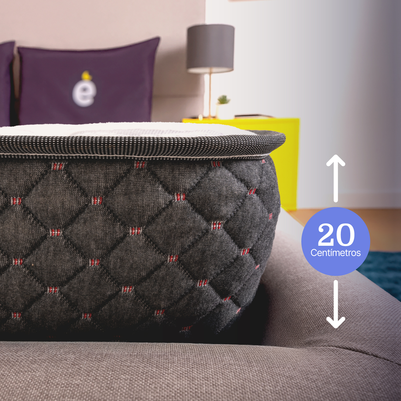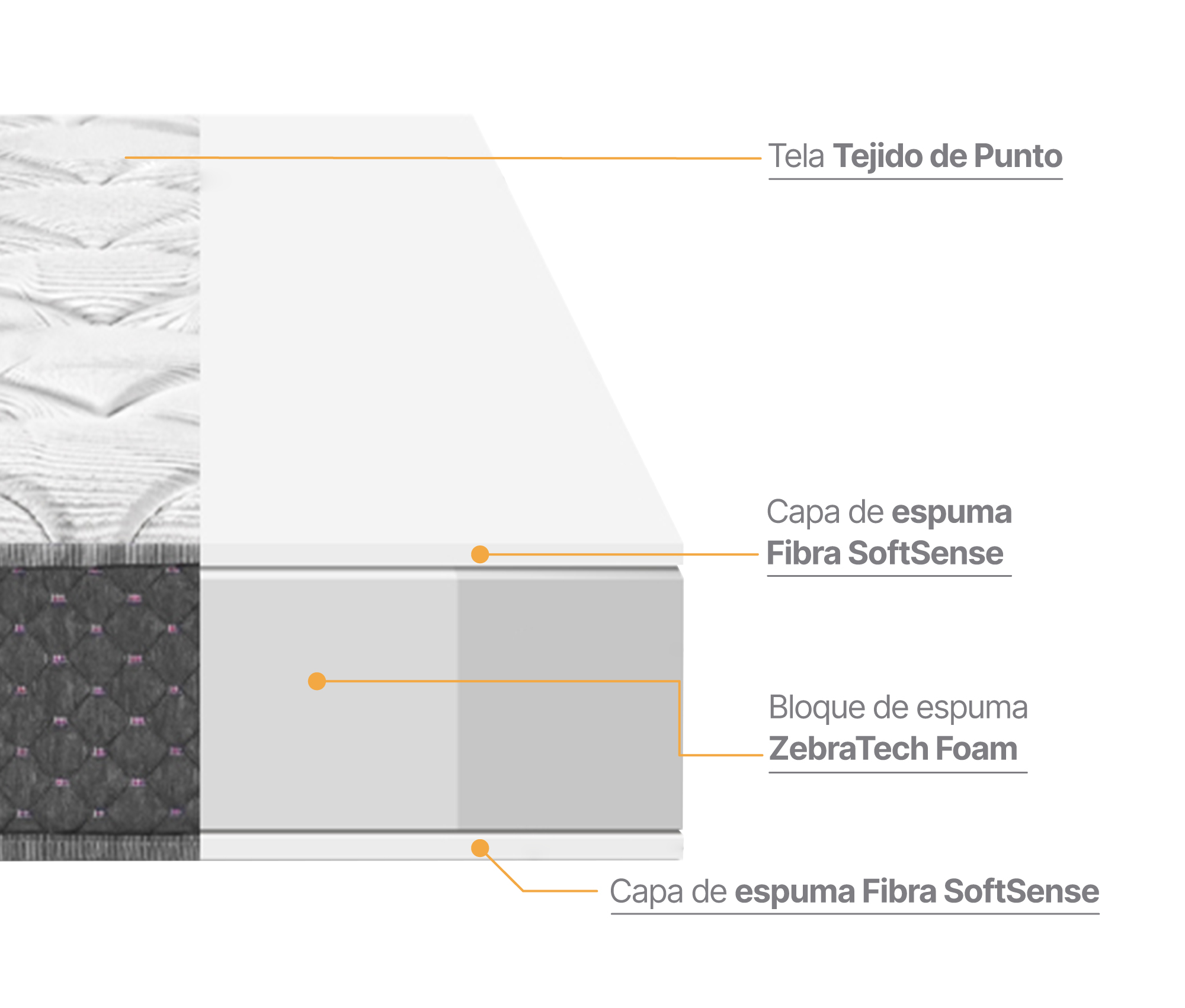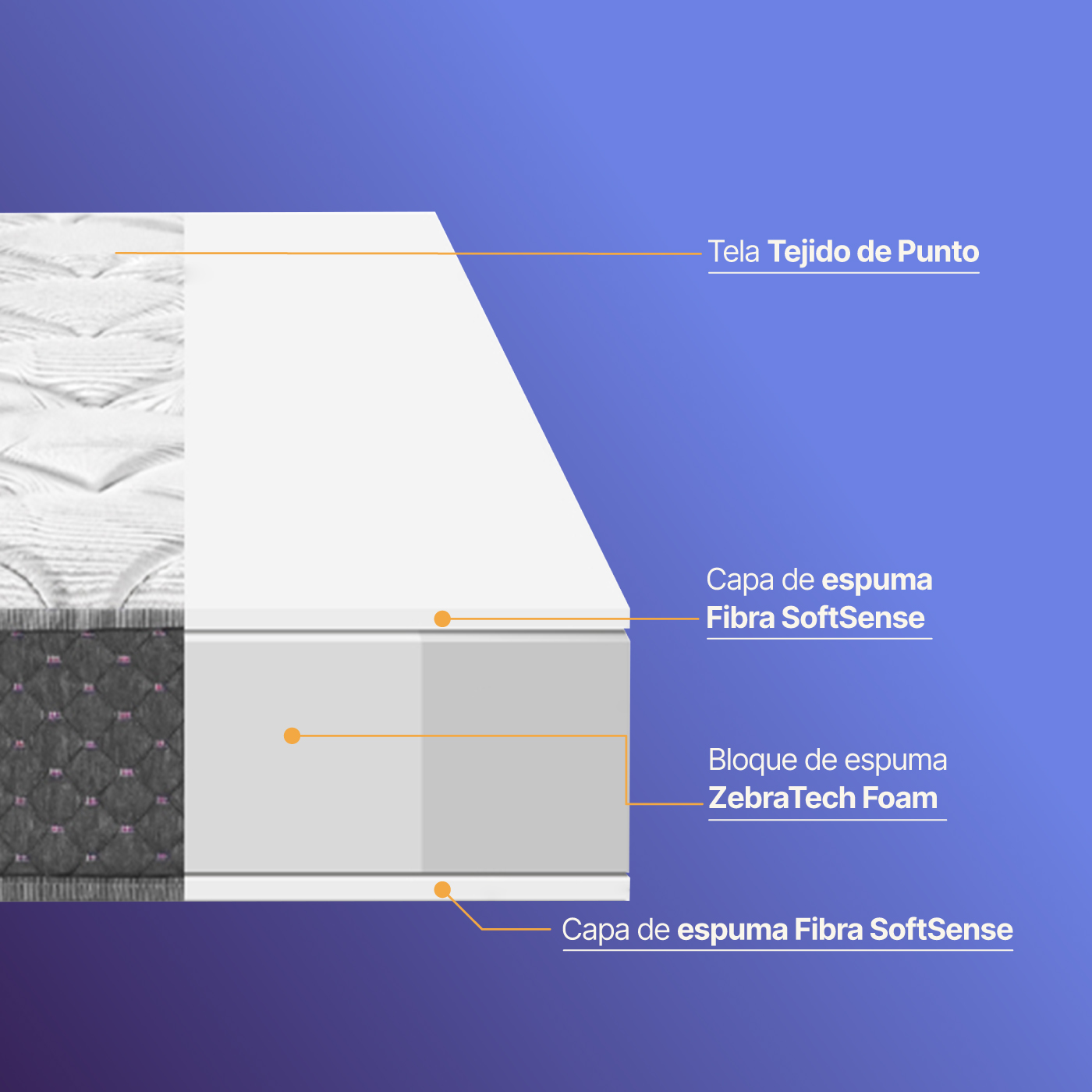 • Confort envolvente: Acolchado superior e inferior en tejido de punto con espuma D20, para suavidad y distribución uniforme de la presión.