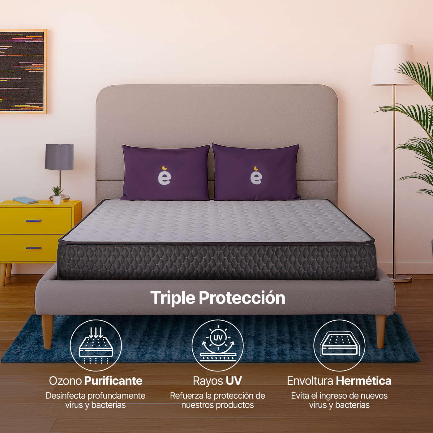 En Productos Essenza, la salud y seguridad son prioritarias. Por ello, cada Colchón Rollú pasa por un riguroso proceso de desinfección que incluye: