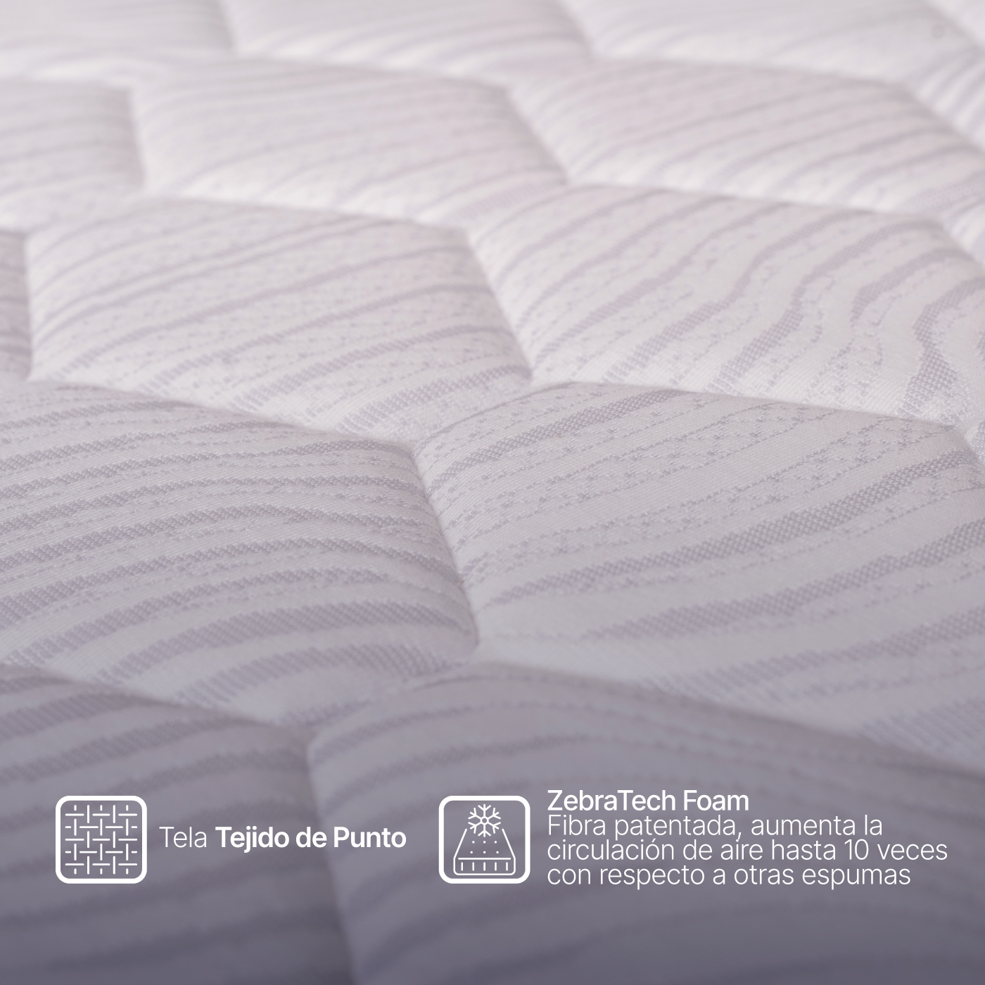 Su superficie acolchada en tejido de punto brinda una sensación inigualable de suavidad, frescura y resistencia.